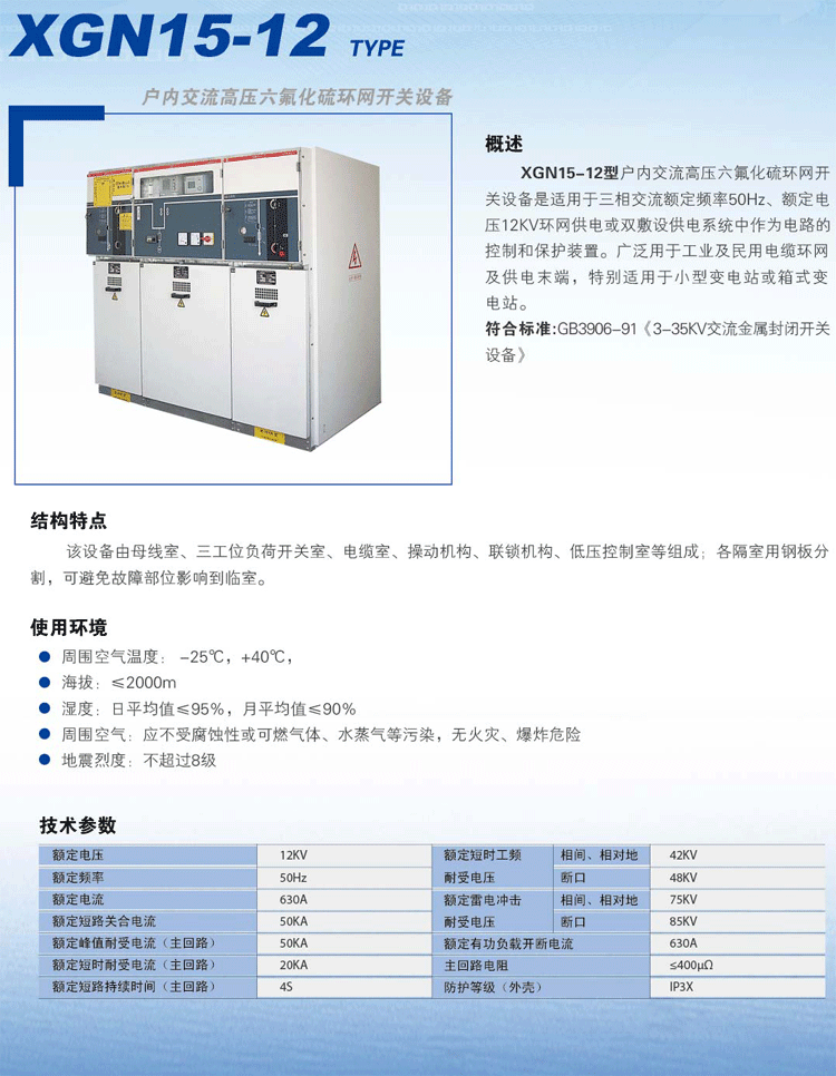 XGN15-12型戶內(nèi)交流高壓六氟化硫環(huán)網(wǎng)開關(guān)設(shè)備