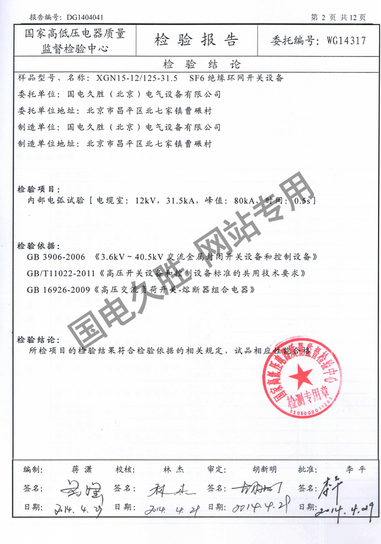 XGN15-12內(nèi)部電弧實(shí)驗(yàn)報(bào)告