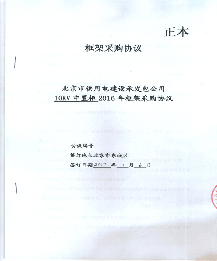 國網(wǎng)北京電力公司平臺(tái)入圍10KV中置柜框架協(xié)議
